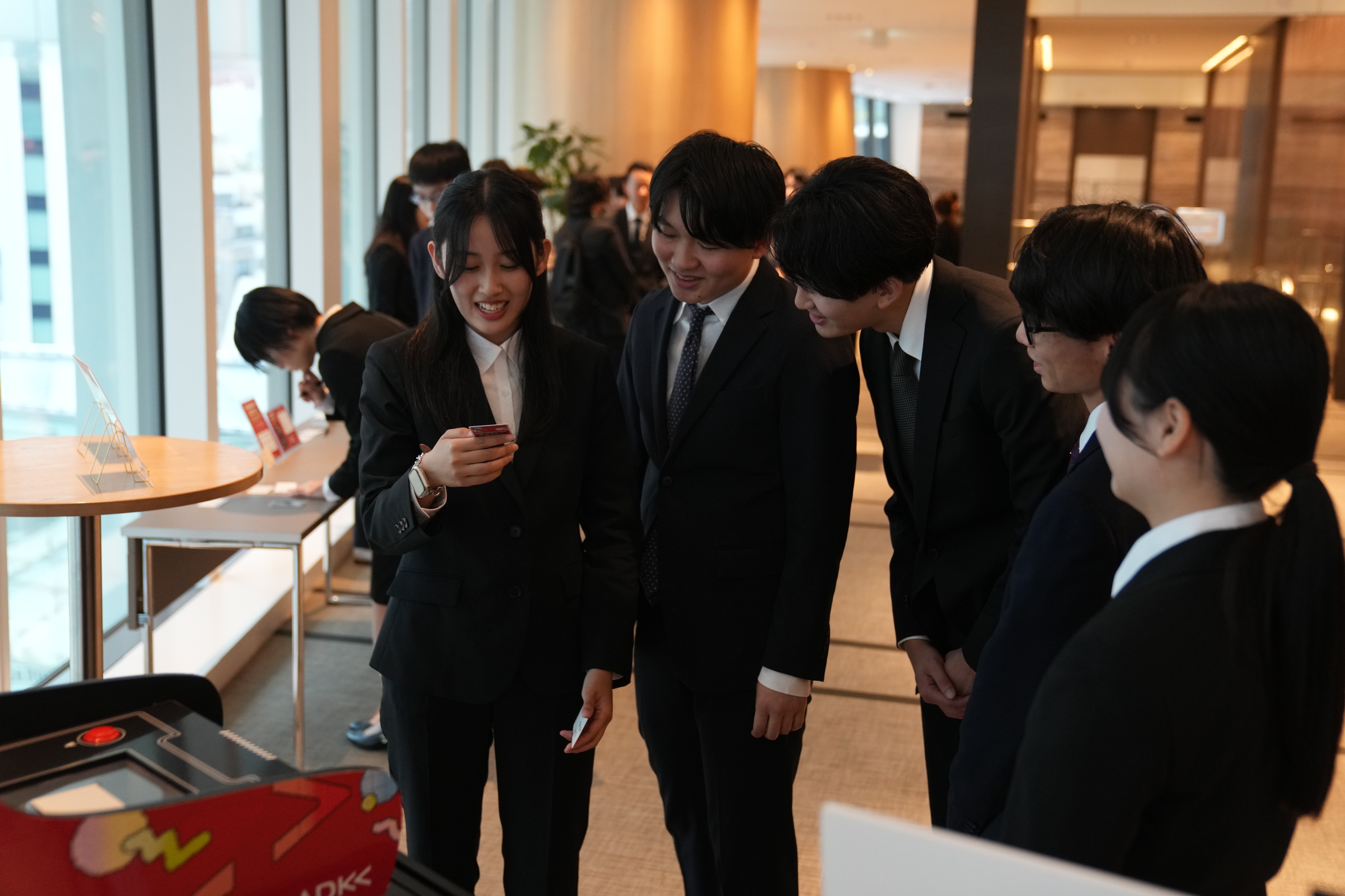 本年度の入社式では、新入社員に最新テクノロジーを肌で感じてもらい、ADKグループが掲げるバリュー「全員が、変革者。」を体現する場として、生成AIによってオリジナルのトレーディングカードを生成できる体験型AI筐体「変革スキルジェネレーター」を設置しました。